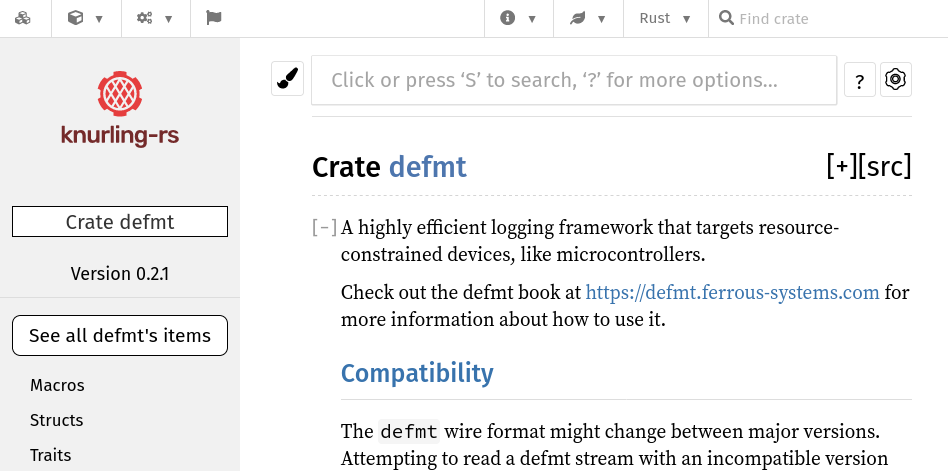 defmt v0.2.1in order to revivedocs.rs/defmt