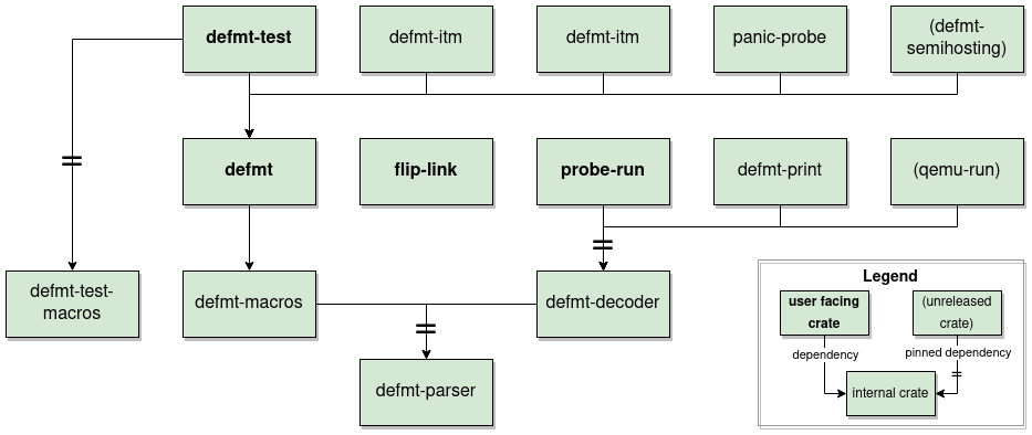 The defmt-README got a diagram showing the relationship among the various knurling crates. We use this internally during releases to make sure we correctly update all the packages and the ones depending on it.